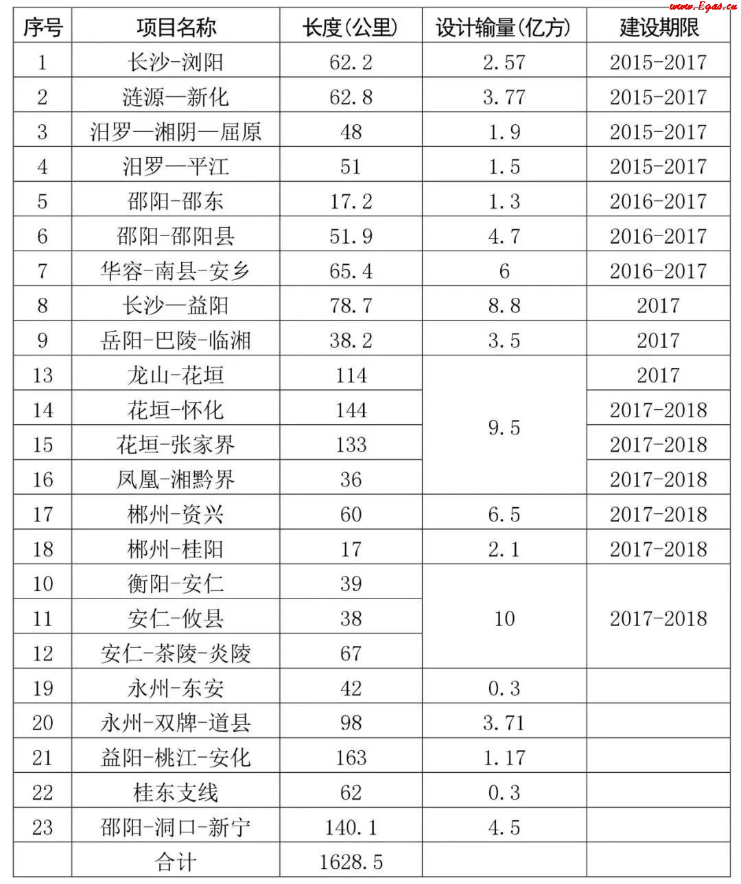 表3:“氣化湖南工程”三年行動計劃建設管道情況表