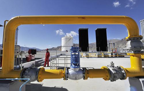 西藏拉薩液化天然氣站安全員王露說:“拉薩天然氣站擴能改造工程項目現(xiàn)已建成六座庫存為900立方米的液化天然氣儲罐,拉薩天然氣站一期和二期每天輸氣能力可達到35萬立方米,完全可滿足拉薩市民目前用氣需求。”