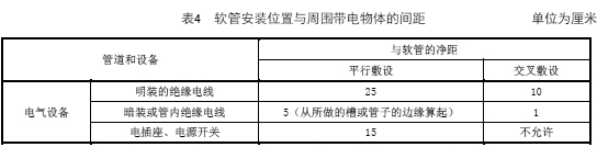 5.11 軟管安裝位置與周圍帶電物體的間距應(yīng)符合表4 的規(guī)定,當(dāng)安裝困難時(shí),應(yīng)采取有效保護(hù)措施或適當(dāng)調(diào)整安裝路線。