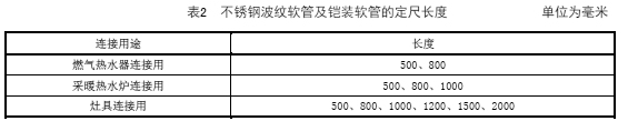 4.13 不銹鋼波紋軟管及鎧裝軟管的定尺長度應(yīng)符合表2的規(guī)定。
