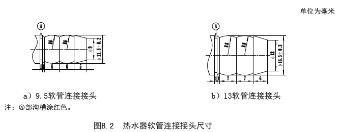 B.2 熱水器軟管連接接頭尺寸應(yīng)符合圖B.2 的規(guī)定。