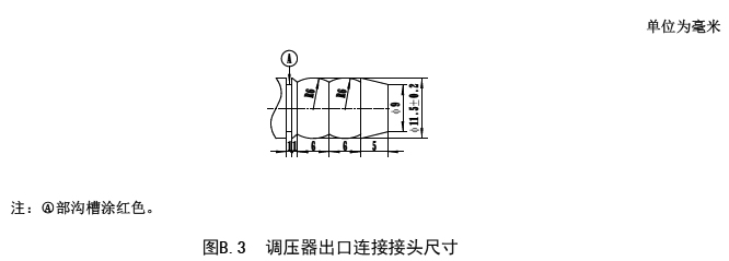 B.3 液化石油氣鋼瓶的調(diào)壓器用9.5軟管連接接頭尺寸應(yīng)符合圖B.3 的規(guī)定。