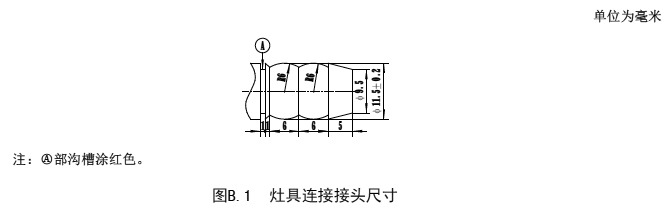 B.1 灶具用9.5軟管連接接頭尺寸應(yīng)符合圖B.1 的規(guī)定。