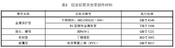 4.15 鎧裝軟管的其他零部件材料應(yīng)符合表3 的規(guī)定,或采用更優(yōu)性能的材料。