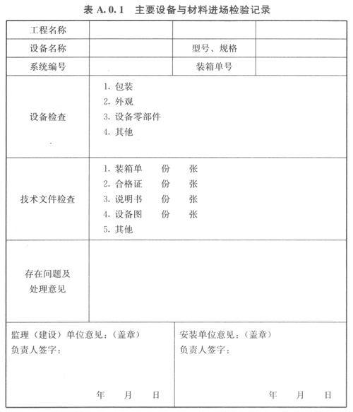 A01主要設(shè)備與材料進(jìn)場檢驗記錄可按表A01的格式記錄。