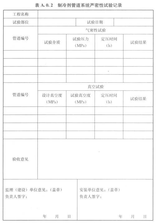 A02制冷劑管道系統(tǒng)嚴(yán)密性試驗記錄可按表A02的格式記錄。
