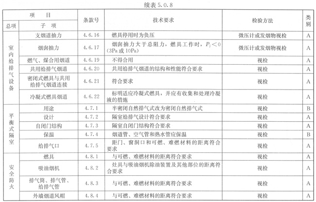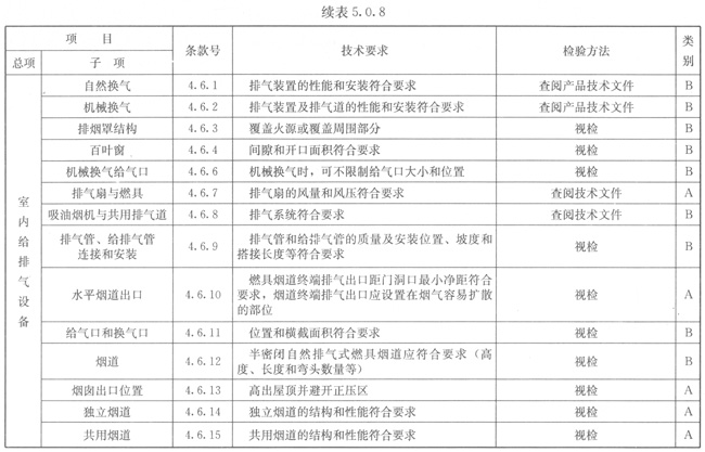 5.0.8燃具安裝應按表5.0.8的規(guī)定進行檢驗。