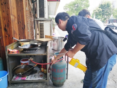 工作人員檢查液化氣管道是否漏氣 |