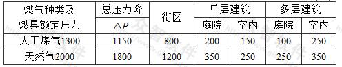 2 把低壓管道的壓力由小于或等于0.005MPa提高到小于0.01MPa。這是考慮為今后提高低壓管道供氣系統(tǒng)的經(jīng)濟(jì)性和為高層建筑低壓管道供氣解決高程差的附加壓頭問題提供方便。