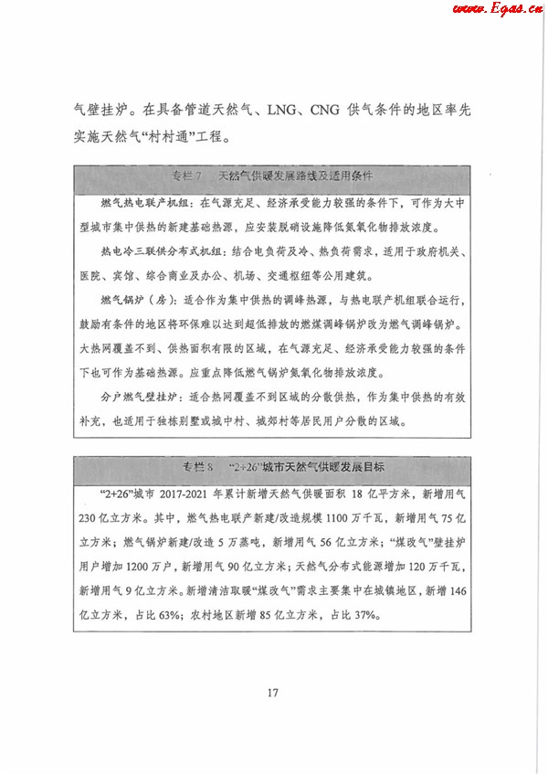 北方地區(qū)冬季清潔取暖規(guī)劃(2017-2021)及《北方地區(qū)冬季清潔供暖“煤改氣”氣源保障總體方案》