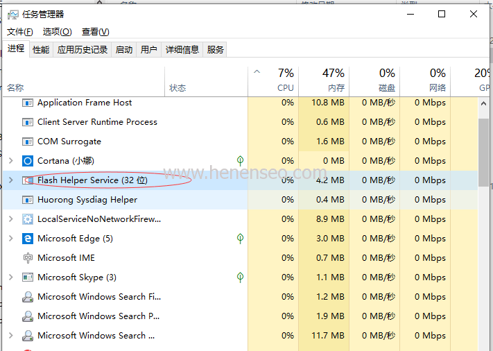 今天教大家直接刪除這個廣告。 等下次彈出來的時候,鍵盤快捷鍵Ctrl+Shift+Esc打開任務(wù)欄管理器,找到FlashHelperService.exe這個進(jìn)程,右鍵結(jié)束進(jìn)程。
