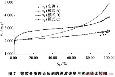 在固結(jié)沉積物實(shí)驗(yàn)中,筆者發(fā)現(xiàn)低飽和度的水合物(飽和度小于10%)對(duì)聲速影響不明顯的現(xiàn)象,這種現(xiàn)象也被不同學(xué)者所捕捉[19~20]。經(jīng)上述分析后認(rèn)為,水合物在沉積物孔隙流體中形成,對(duì)聲速影響不大,可能是造成這一現(xiàn)象的原因。而當(dāng)水合物膠結(jié)沉積物顆粒時(shí),其對(duì)聲速的影響則可能成倍增長(zhǎng),如在松散沉積物中,微量的水合物(飽和度1%左右)即可使縱波速度增長(zhǎng)200~300m/s??梢姡谔烊粴馑衔锏馁Y源評(píng)價(jià)中,了解水合物的微觀分布同樣具有重要的作用。