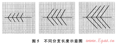 給定相同的主支長度和分支間距,分支長度分別為200m/350m和500m,間距為200m,分支與主支的夾角為45°(圖5),研究不同分支長度對產(chǎn)氣量的影響。