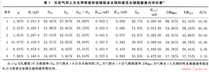 關鍵詞:低滲透儲集層;含水飽和度;水鎖;損害;機理;暫時性;永久性