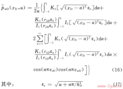 1) 在圓形封閉氣藏水平井不穩(wěn)態(tài)流數(shù)學模型的基礎(chǔ)上,利用積分變換和反演算法,得到了模型的Laplace空間解。