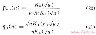 不穩(wěn)態(tài)流無量綱產(chǎn)量和無量綱井底壓力的Laplace變換定義分別為: