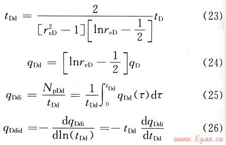 在繪制典型曲線前,對無量綱時間和無量綱產(chǎn)量進行變換,引入如下變量[6]: