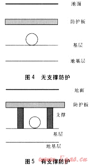 城市地下管網(wǎng)復(fù)雜,各類管道縱橫交錯。有些場所進行燃?xì)夤艿婪笤O(shè)時由于各種原因無法滿足規(guī)定的埋設(shè)深度要求[1]。因此,《城鎮(zhèn)燃?xì)庠O(shè)計規(guī)范》GB 50028—2006第6.3.4條中注明“當(dāng)不能滿足上述規(guī)定時,應(yīng)采取有效的安全防護措施[2]。”在實際燃?xì)夤艿朗┕ぶ幸话愀鶕?jù)經(jīng)驗采取相應(yīng)的淺埋保護措施,至于效果如何,是否達到要求,不是很清楚。本文建立有限元分析模型,對在采取防護措施情況下的埋地燃?xì)夤艿朗芰η闆r進行分析,并結(jié)合實驗分析,驗證模型的可靠性,以指導(dǎo)實際工程。