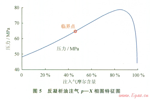 在對(duì)反凝析油氣組成和相態(tài)分析基礎(chǔ)上,對(duì)反凝析油與注入氣相態(tài)特征和地層剩余井流物與注入氣的相態(tài)特征進(jìn)行了模擬研究,分析了注入氣對(duì)降低反凝析、使反凝析油再蒸發(fā)為氣相的機(jī)理[7]。