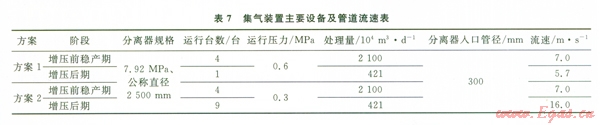 下面僅以天然氣處理廠集氣裝置中的氣液分離器和進(jìn)口管道為例,說明上述因素對(duì)增壓方案的影響。