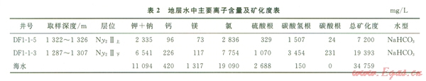 超高溫中央底辟帶的東南區(qū)黏土礦物以綠泥石、伊利石為主;東方區(qū)、樂(lè)東區(qū)雖然以伊/蒙混層、伊利石為主,但在熱流體活躍層段出現(xiàn)高嶺石、綠泥石含量異常,如東方區(qū)和樂(lè)東區(qū)l 500 m上下出現(xiàn)高嶺石含量增高、綠泥石含量降低異常層段,這是由于大量的C02隨著熱流體從深部向上運(yùn)移,在中淺層聚集,并溶于水中,碳酸根含量增加,隨后碳酸釋放出H十,使地層水呈酸性,促使綠泥石向高嶺石轉(zhuǎn)化的結(jié)果。另外在熱流體作用下,出現(xiàn)蒙脫石向伊利石轉(zhuǎn)化突變異?,F(xiàn)象,如靠近斷裂的DFl-1-2井(圖3)在1 200~1