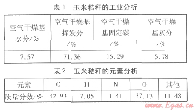 玉米秸稈是我國北方農(nóng)村地區(qū)應(yīng)用的主要生物質(zhì)材料,低熱值為l5.84 MJ/kg[8],其工業(yè)分析見表1,元素分析見表2。