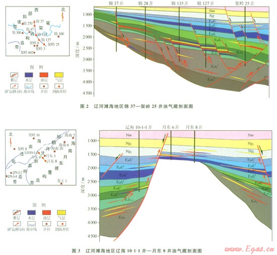 2)灘海西部地區(qū)油氣分布層間差異大,油氣藏類型變化快,油氣藏主要沿砂體和斷裂分布;中部地區(qū)油氣主要分布在斷裂發(fā)育且封蓋條件較好的層位,油氣性質(zhì)差異明顯;東部地區(qū)以發(fā)育氣藏為主,平面上分布穩(wěn)定,具有油氣分布井段長(zhǎng)、砂體延伸范圍小、相變快的特點(diǎn),不同斷塊、不同組段油氣發(fā)育程度差異大,并以中淺部層系多套氣藏疊置發(fā)育為主。