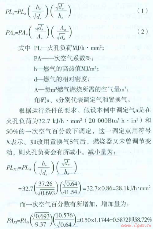 如前所述,本文是介紹美國燃?xì)饣Q性的求解公式,在此,先說明燃?xì)饣Q前后,火孔負(fù)荷和一次空氣系數(shù)發(fā)生變化的計(jì)算公式,以加深對(duì)這些公式應(yīng)用的理解。公式導(dǎo)出的過程則隨后有所論證。