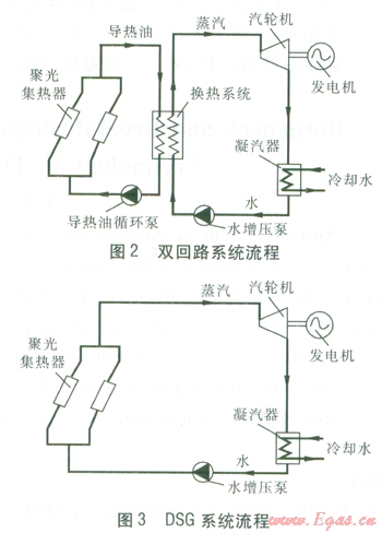 DSG系統(tǒng)已成為槽式太陽(yáng)能發(fā)電系統(tǒng)技術(shù)的新趨勢(shì),這是基于以下優(yōu)點(diǎn):DSG系統(tǒng)較雙回路系統(tǒng)省去中間換熱環(huán)節(jié),從而提高了系統(tǒng)效率。具有成本優(yōu)勢(shì),DSG系統(tǒng)不僅節(jié)省了油水換熱設(shè)備,也無(wú)需建設(shè)導(dǎo)熱油防火系統(tǒng)、儲(chǔ)油罐等,可節(jié)約大量資金,降低造價(jià)。