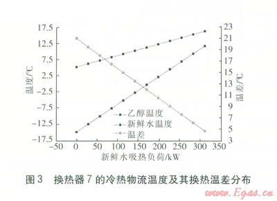 換熱器3、換熱器7的冷熱物流溫度及其換熱溫差分布分別見圖2、3。