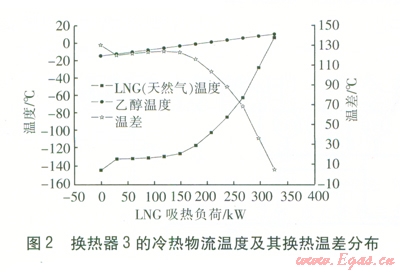 由圖2可知,當-145℃的LNG與乙醇進行熱交換時,LNG氣化升溫至