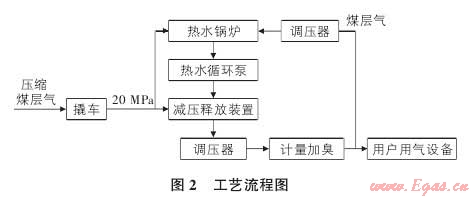 壓縮煤層氣撬車:2輛( V =4 000標立方米)。減壓釋放裝置選用撬裝設備,進口壓力P