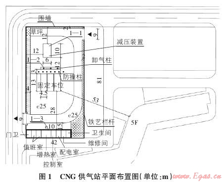 關鍵詞:CNG 供氣站,總圖,工藝系統(tǒng),中壓管道,安全設計