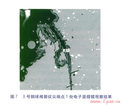 Ⅰ號和號銅球閥開裂斷面金相和掃描電鏡檢測結(jié)果均表明,斷面開裂形式為從閥體外表起裂的沿晶開裂特征,能譜分析結(jié)果表明斷面灰色物質(zhì)中含一定量的有害元素S,由此可判斷Ⅰ號和號銅球閥閥體開裂形式為硫化物應(yīng)力腐蝕開裂。