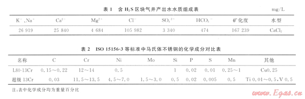 1993年起,超級13Cr油套管開始商業(yè)化生產(chǎn)。日本、德國V&M公司和國內(nèi)的上海寶山鋼鐵公司、天津鋼管公司等均有批量生產(chǎn)超級13Cr的能力,并且在北海油田、北美和中國石化西南分公司高含CO2氣田中得到了一定規(guī)模的應用。但國內(nèi)對超級13Cr油套管的工程應用研究相對較少,特別是管柱受力狀況下的腐蝕行為需要深入探討。下面結合陜北地區(qū)某區(qū)塊含H2S氣井的腐蝕選材進行試驗分析。