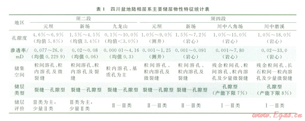 在強(qiáng)烈壓實、膠結(jié)等作用下,l四川盆地陸相層系各套儲層物性均較差(表1)。但在燕山中晚期,川西和川西北大部地區(qū)連續(xù)沉積了下白堊統(tǒng),部分地區(qū)還沉積了上白堊統(tǒng)、侏羅系及須家河組,砂巖深埋;川中及大川東遭受剝蝕,砂巖埋藏較淺。燕山期剝蝕量:川東北、川東南、鄂西渝東剝蝕厚度介于l500~3500 m,須家河組和侏羅系砂體最大埋深小、壓實作用相對較弱、物性相對好;川西剝蝕厚度小于