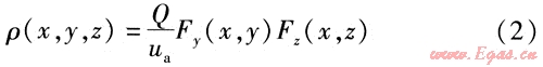 式中ρ(x,y,z)——下風(fēng)向空間任意一點(diǎn)的質(zhì)量濃度,mg/m3
