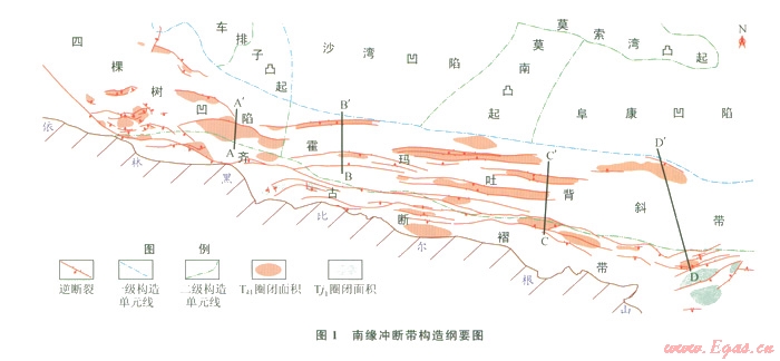 南緣沖斷帶油氣勘探目的層系根據(jù)3套區(qū)域性蓋層(白堊系吐谷魯群泥巖層、古近系安集海河組泥巖層及塔西河組膏泥巖層)與其下儲層的配置,可劃分為上、中、下3個成藏儲蓋組合。南緣構(gòu)造樣式及其疊加特征控制了南緣3大成藏組合的構(gòu)造及圈閉特征。