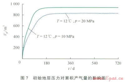 1.7 初始地層壓力對產(chǎn)氣潛力的影響