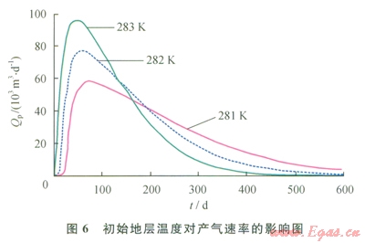 1.6 初始地層溫度對產(chǎn)氣潛力的影響
