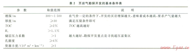 具有勘探開發(fā)價(jià)值的頁巖儲層須滿足表2所示的基本條件。