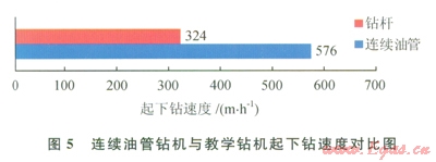 在相同地質(zhì)狀況和用同一臺鉆井泵的情況下,將連續(xù)油管鉆機與相距35.6m處宏華2號教學鉆機(ZJ40DBS鉆機+頂驅(qū))的鉆井情況進行對比如下:
