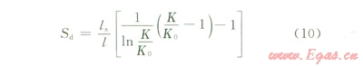 通過式(10)可以算出在不同污染深度下的表皮系數(shù)。其污染深度與污染表皮系數(shù)關(guān)系(l=1 50 cm,K=0.1 D)見圖4。從圖4可知污染表皮系數(shù)隨著污染深度的增加而增大。