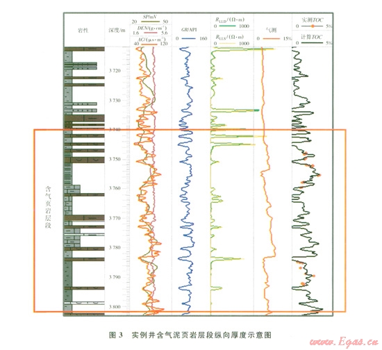 實例井的含氣泥頁巖層段從3
