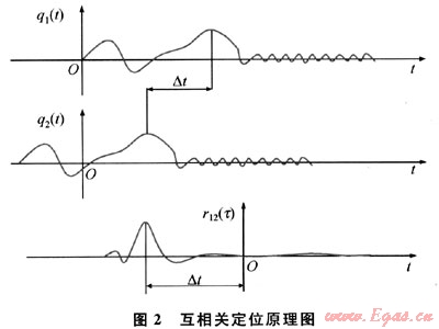 通過求相關(guān)函數(shù)r12(r)的極大值和極大值對(duì)應(yīng)的τ0,即可進(jìn)行泄漏檢測和定位?;ハ嚓P(guān)定位原理圖如圖2所示。
