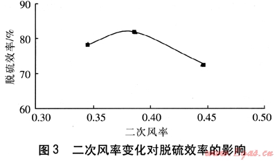 ③ 二次風(fēng)率變化對(duì)脫硫效率的影響