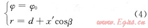 ,裂紋長為2a,O′為裂紋的中點(diǎn),裂紋的傾角為β,裂紋相對(duì)最大水平地應(yīng)力的方位角為φ0。求出裂紋面上每一點(diǎn)的正應(yīng)力和剪應(yīng)力,即可得到應(yīng)力強(qiáng)度因子;求出裂紋面上每點(diǎn)的應(yīng)力狀態(tài),即可得到剪應(yīng)力和正應(yīng)力;只需求出每點(diǎn)的r和φ,然后代入定向井井周應(yīng)力計(jì)算公式即可得到應(yīng)力狀態(tài)。根據(jù)假設(shè)可知:
