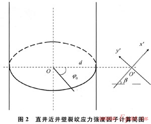 假設(shè):近井壁裂紋擴(kuò)展的開始是井壁失穩(wěn)的臨界點(diǎn)。即如果存在井壁裂紋的擴(kuò)展條件,就認(rèn)為井壁會(huì)發(fā)生失穩(wěn)坍塌現(xiàn)象,并且近井壁裂紋擴(kuò)展的開始,就是井壁失穩(wěn)的開始。根據(jù)此假設(shè),就可以把定量確定裂紋擴(kuò)展的判據(jù)應(yīng)用于確定井壁失穩(wěn)。