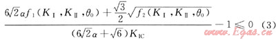 通過推導(dǎo)可得Ⅰ-Ⅱ壓剪裂紋擴(kuò)展判據(jù):