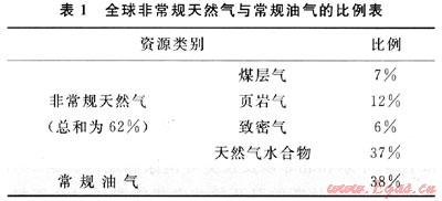 據(jù)中國首次非常規(guī)油氣資源國際研討會資料,權(quán)威專家估算的全球非常規(guī)天然氣資源量為2338.2×1012m3,約為世界常規(guī)天然氣資源量(512.6×1012m3)的4.56倍。